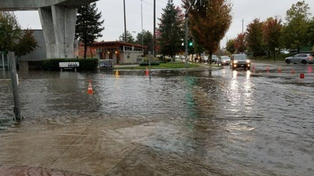 An abandoned car in front of the LifeScan building where a RAPS Vancouver Chapter program was successfully held, despite unusual flash flooding event.